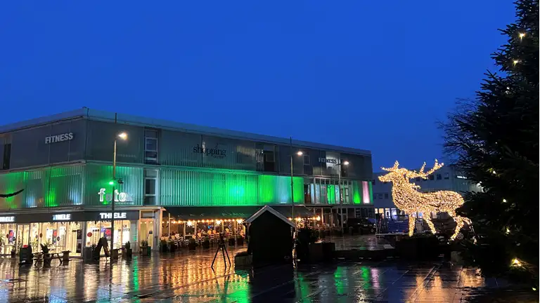 Helt konkret er der opsat lysarmaturer på stort set alle master på torvet og de lyser ind på bygningerne, ligesom der er sat lys bag facadebeklædningen på J. P. Jacobsens Centeret, så det oplyses indefra.