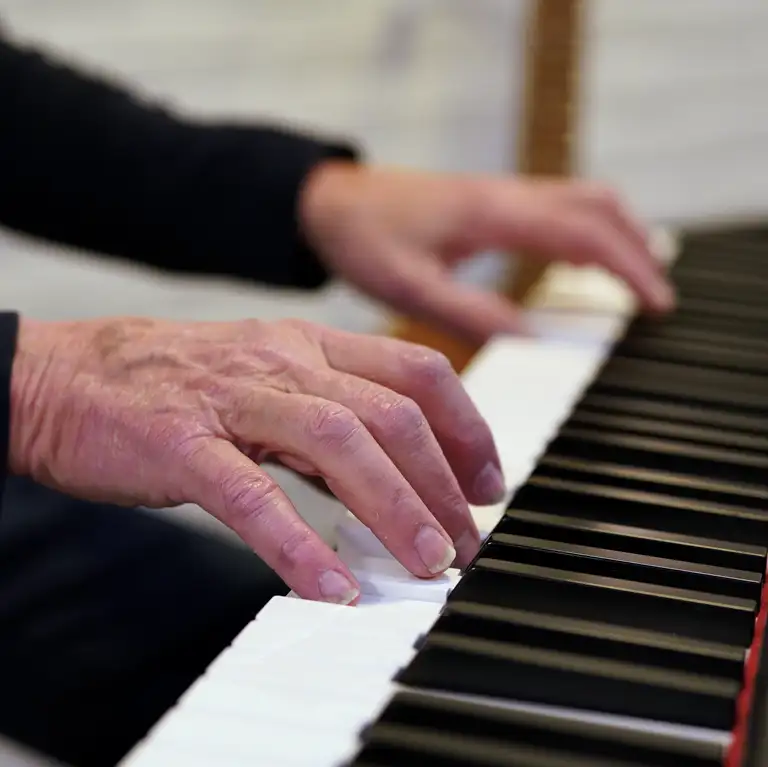 Det betyder, at de nu hver tirsdag får besøg af Jens Peter Knudsen. Et lokalt et-mands orkester, der ruller guitar og klaver ind i fællesrummet og spiller for til fællessang, fløjtespil og hygge omkring bordet i deres afdeling.
