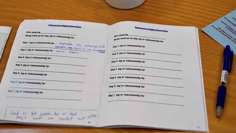 Tilbage omkring bordet i kurseslokalet er sidste øvelse at arbejde med taknemmelighed. Al forskning peger nemlig på, at taknemmelighed har en række positive effekter på både mental og fysisk sundhed.