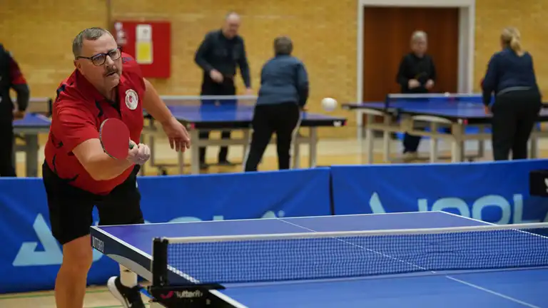 - Det er skønt at opleve de her formiddage fyldt med aktivitet i hallen. Nogle har spillet i mange år. Andre er nye i sporten, men der er plads til alle niveauer, og vi organiserer det, så man får udfordring på det niveau, man er på, fortæller Peter Bak-Jensen, formand for Sjørring Bordtennisklub, bordtennisspiller gennem 53 år og selv nylig erklæret pensionist.