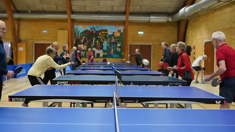 Formiddagsholdet blev lukket, men meget har ændret sig siden da. Nu vrimler det nemlig med bordtennisglade seniorer i klubben, og der er kørt 17 borde frem til træningen på en helt almindelig vintertirsdag.