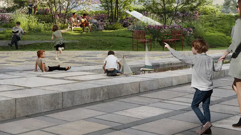 En skulptur formet som en søstjerne bliver et lille shelter, hvor børn kan lege. En skulptur formet som en musling bliver en glide- og tumlebane, og en skulptur formet som et søpindsvin kommer til at sprøjte vand i et vandbassin i sommerhalvåret.