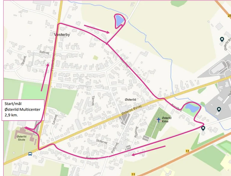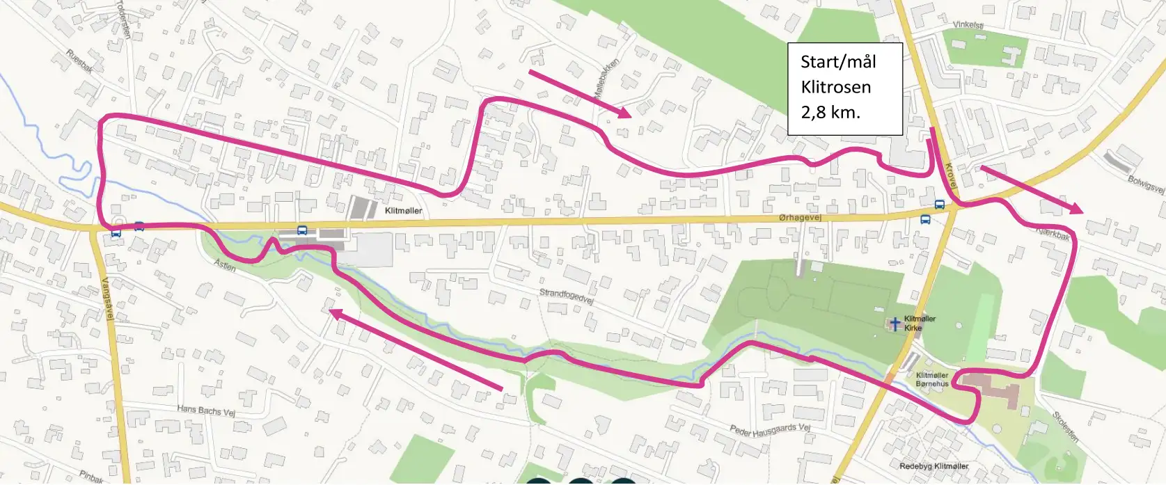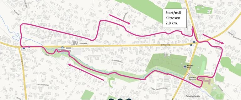 Ruten starter og slutter ved Ældrecenter Klitrosen.