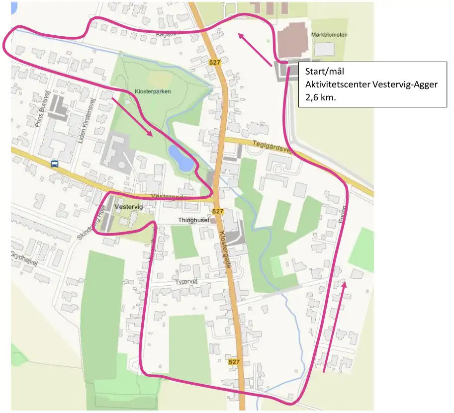 Ruten starter og slutter ved Aktivitetscenter Vestervig-Agger.