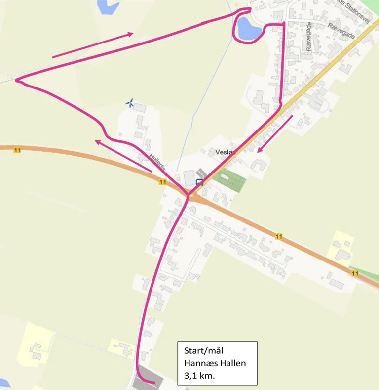 Ruten starter og slutter ved Hannæs Hallen.