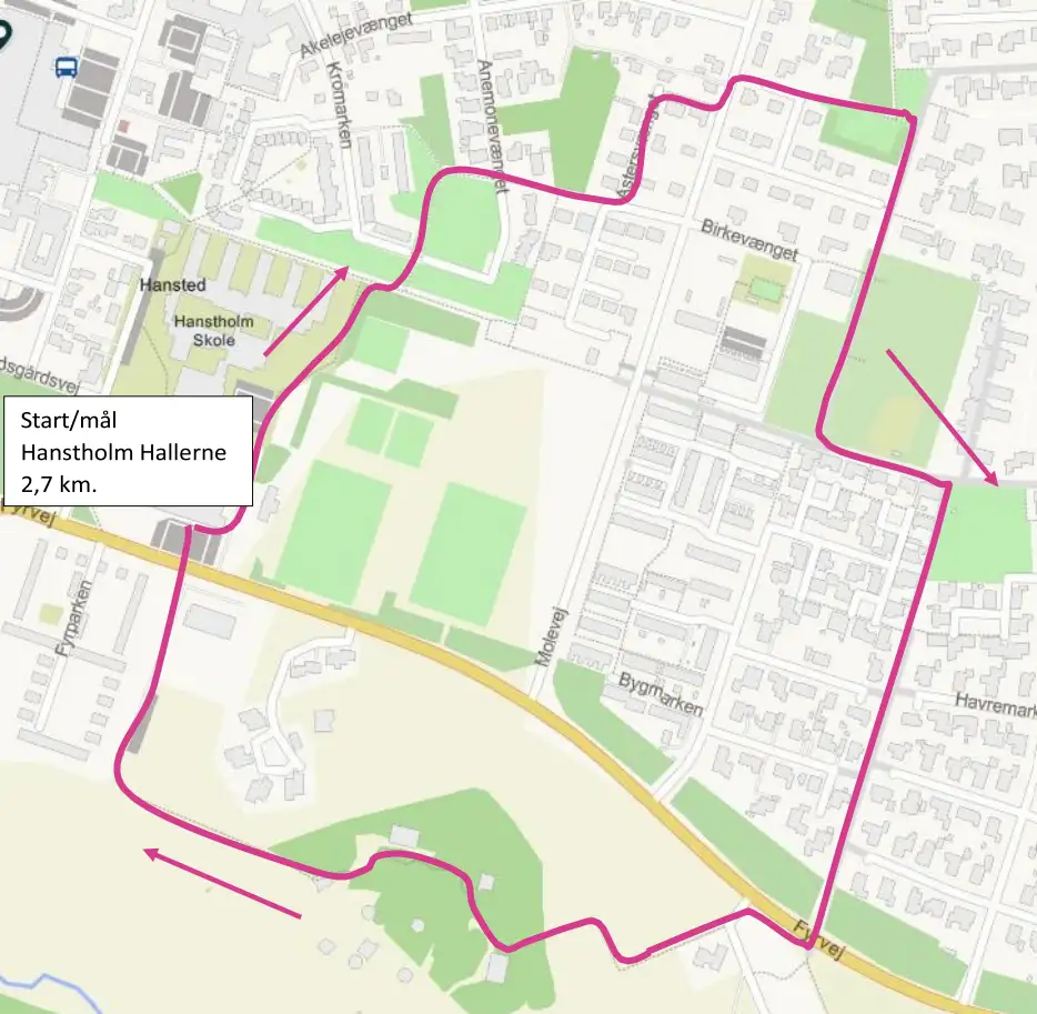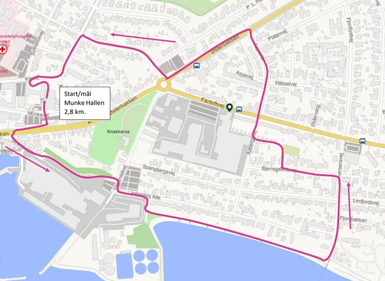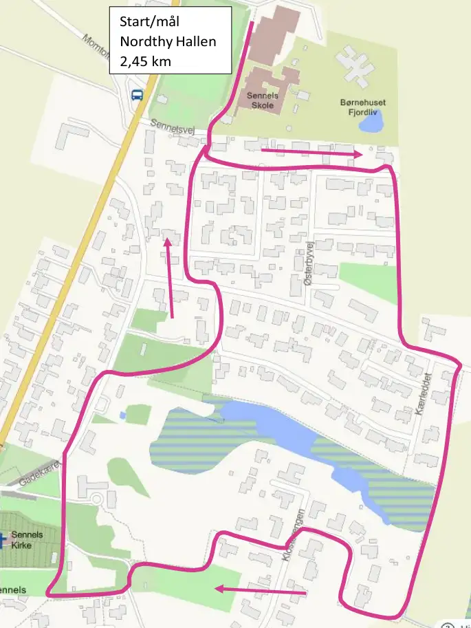 Ruten starter og slutter ved Nordthy Hallen.