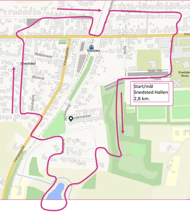 Ruten starter og slutter ved Snedsted Hallen.