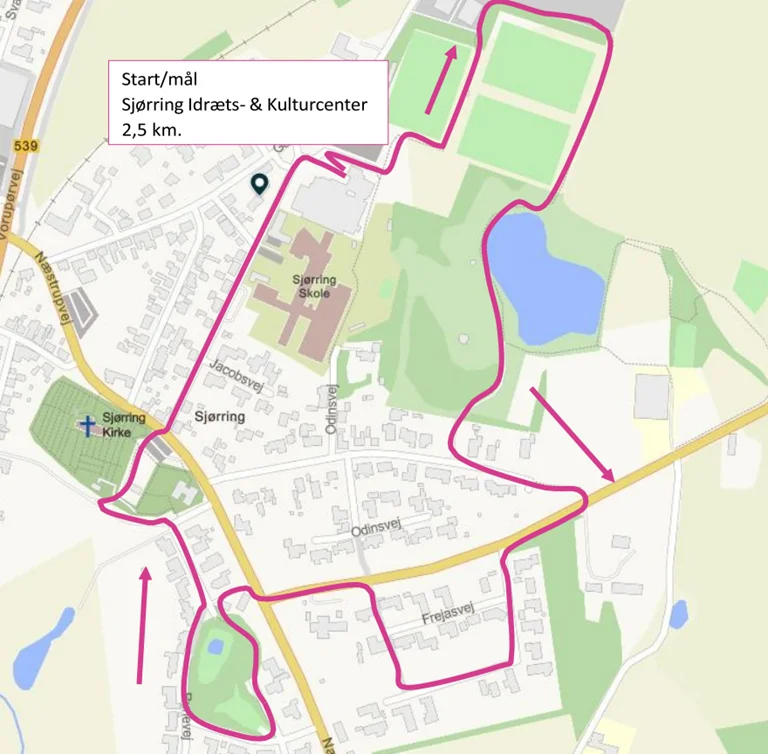 Ruten starter og slutter ved Sjørring Idræts- & Kulturcenter.