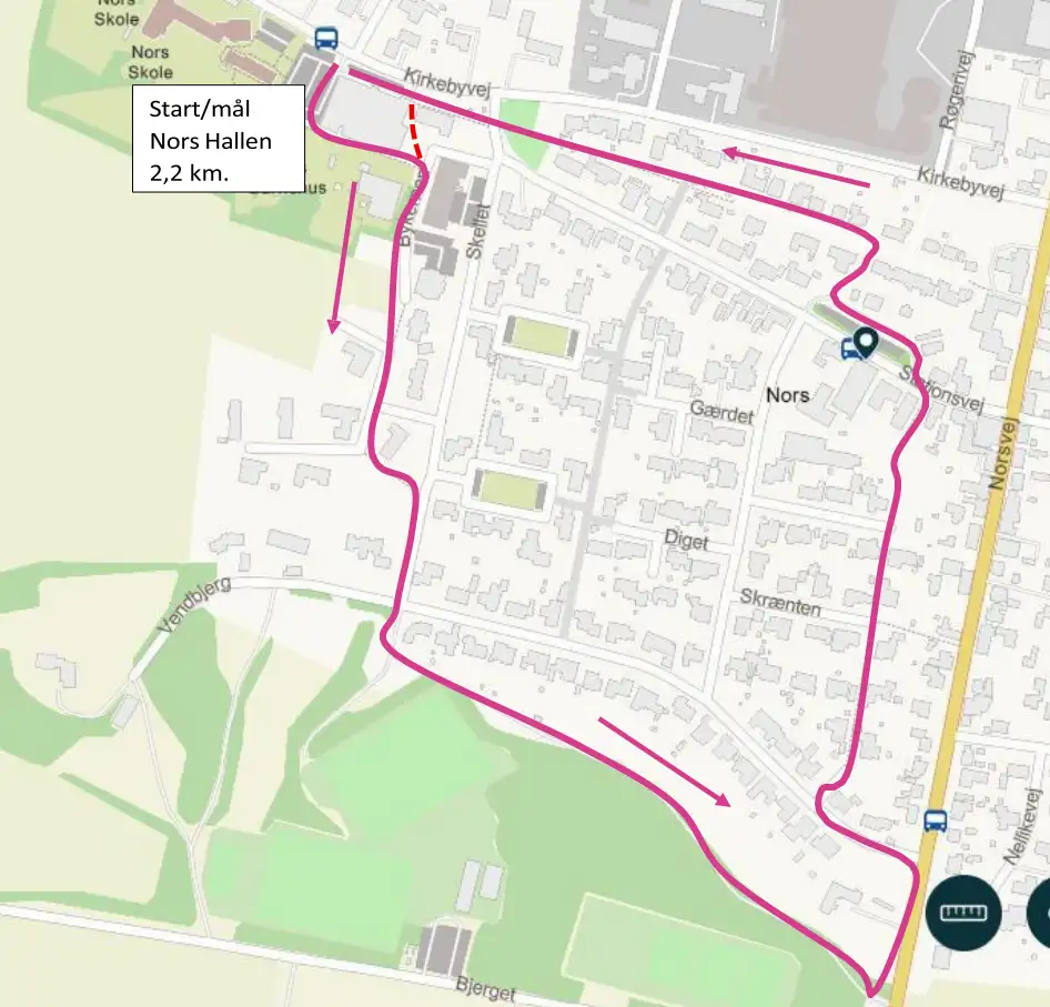 Ruten starter og slutter ved Nors Hallen.