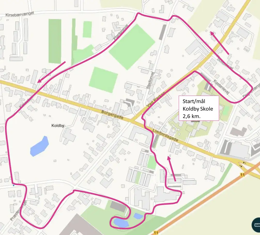 Ruten starter og slutter ved Koldby Skole.