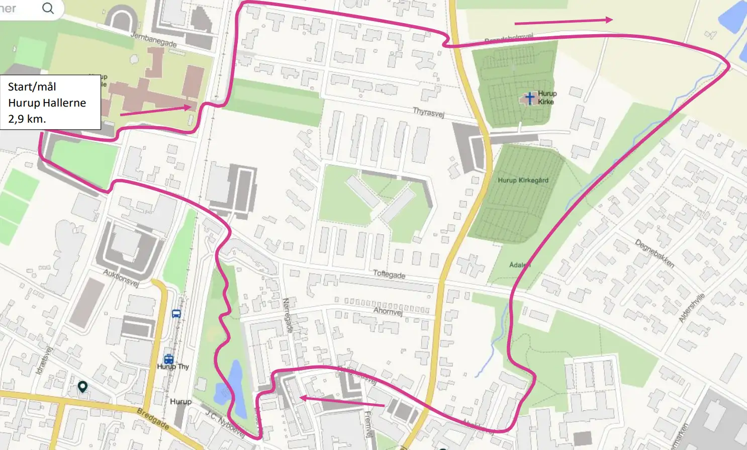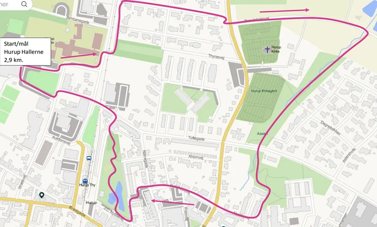 Ruten starter og slutter ved Hurup Hallerne.