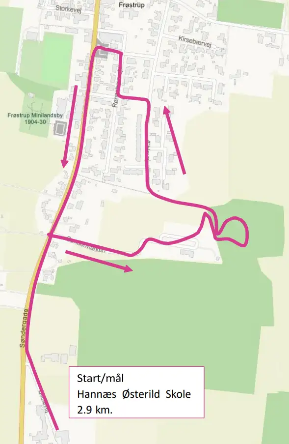 Ruten starter og slutter ved Hannæs-Østerild Skole.