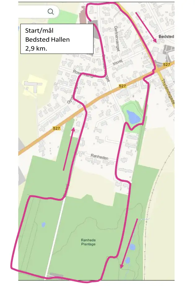 Ruten starter og slutter ved Bedsted Hallen.